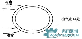 在喷嘴里有分配器输出的润滑油黏附在喷油嘴的内壁四周,当压缩空气快速流动时油滴也随之缓慢向前并逐渐吹散变薄形成一片联系的油膜被导入润滑点上的。